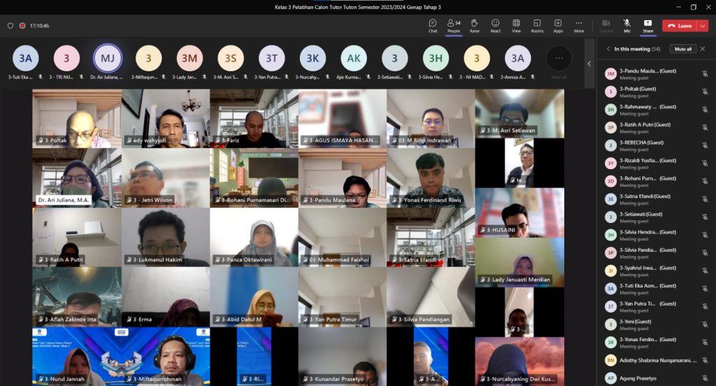 Pelatihan Calon Tutor Tutorial Online (Tuton) Tahap III semester 2023/2024 Genap​