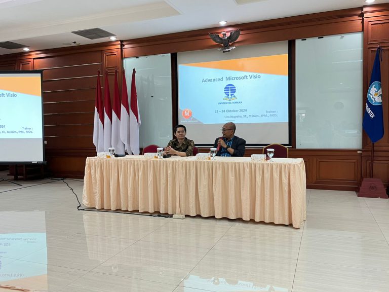 Pelatihan Microsoft Visio diselenggarakan pada Rabu-Kamis, 23-24 Oktober 2024 secara luring di Aula Gedung Pusat Kualitas Lantai 3 Universitas Terbuka. Pelatihan ini turut dihadiri oleh Kepala Pusat Sumber Daya Manusia Dr. Agus Joko Purwanto, M.Si, memberikan arahan sekaligus membuka acara. Pelatihan ini melibatkan narasumber berpengalaman yaitu Ucu Nugraha, ST., M.Kom., IPM., MOS. serta para fasilitator dan dihadiri oleh 45 orang Peserta dari UT Pusat.